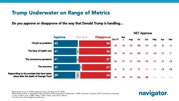 • Trump is in the negative on everything from the economy to handling the pandemic