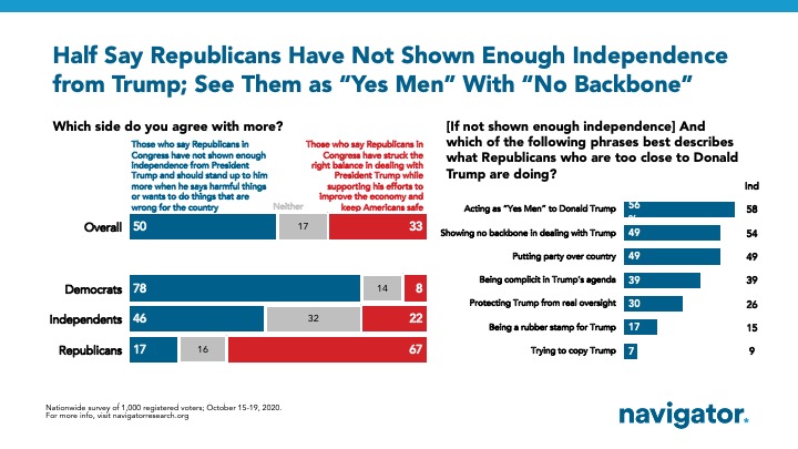• Americans feel Republicans in Congress have not shown enough independence from Trump
