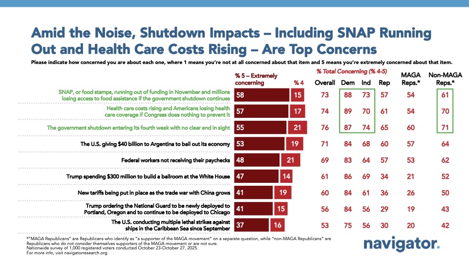 Shutdown Stagnation, Health Care Costs, and Food Assistance Rise to Top Concerns