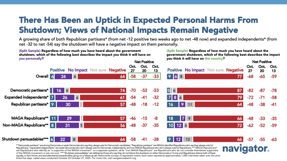 Polling report on the most concerning consequences of the government shutdown and how to talk about health care costs in relation to the budget.